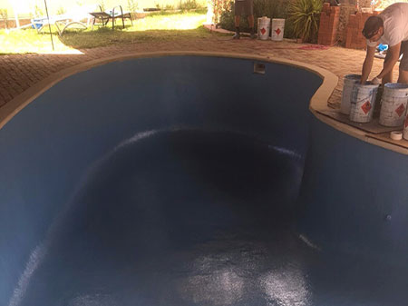 A Derakane Primer layer is applied over the freshly ground surface. This primer is exclusively used for concrete pools as it penetrates the concrete enhancing the strength of the next layer.